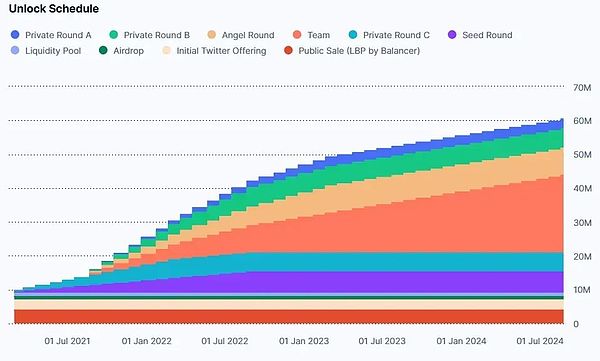 일시2024년 1월, 마스크 네트워크의 모든 토큰이 잠금 해제되었습니다. 토큰 릴리스는 2021년 2월1,091만 개에서 1억 개까지 점진적으로 증가했습니다. >2024년 1월 1억유통 공급량을 증가시켜 장기 성장을 지원하기 위해 유동성을 최적화할 것입니다.